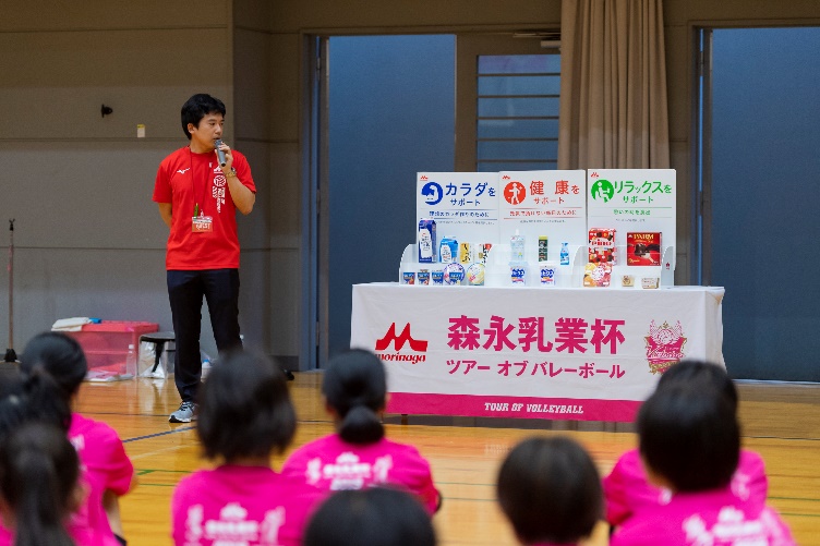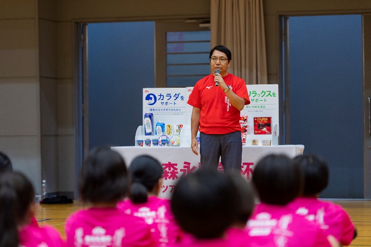 閉会式では森永乳業スタッフから栄養指導があり、最後は参加者・保護者の皆様とともに森永乳業製品で水分と栄養を補給して閉会しました。