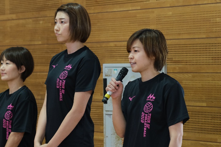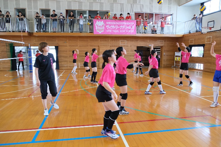 ることが大切。アタッカーの姿勢や、その人の癖もよく見て、わかるようになるとトスがあげやすくなる」と指導しました。