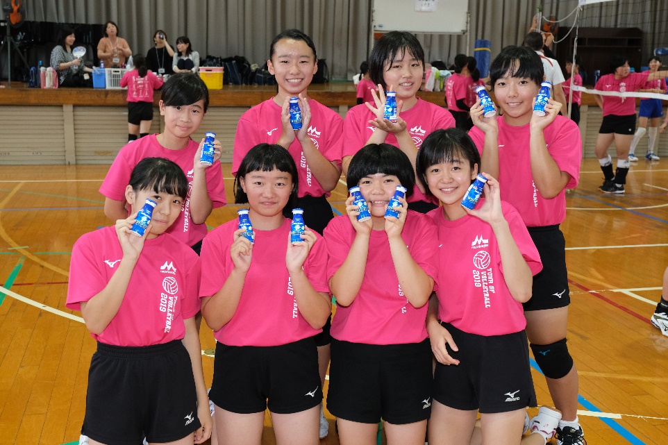 決勝戦は、大接戦の末、5-3で優勝チームが決まりました。その後の、優勝チームとドリームスチームとのエキシビジョンマッチでは、講師の3名に加え、アシスタントコーチ2名、森永乳業スタッフ2名が参戦。最初から勢いを掴んだドリームスチームが、最後は狩野のスパイクが決まり5-1で勝利しました。