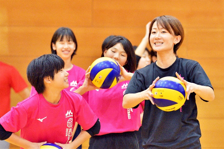 今年の神奈川大会は7つの中学校から102名が参加。アシスタントコーチや球出し・設営・撤収のボランティアには、丸の内ヴィクトリーナの皆さんが来てくださいました。ドリームスからは佐野優子・大友愛が指導に当たりました。