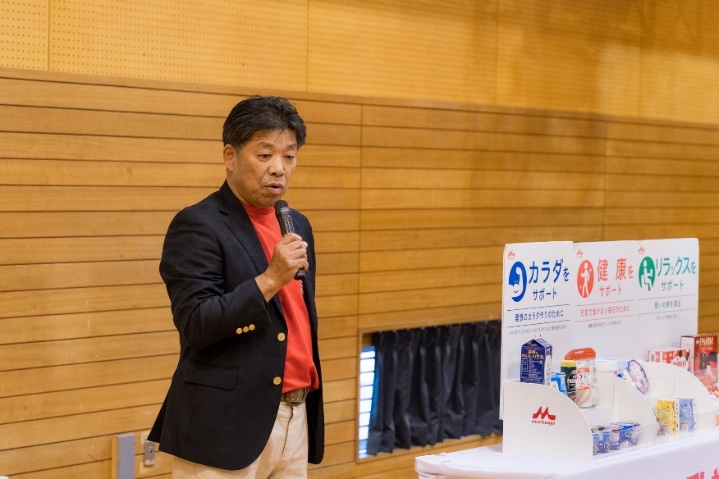 閉会式では森永乳業スタッフから「乳製品の中で最も良い要素が多いのはチーズと言われていて牛乳の10倍ものカルシウムが入っている」話や「日々の食事では、バランス良い食事を心がけてください」と栄養指導がありました。