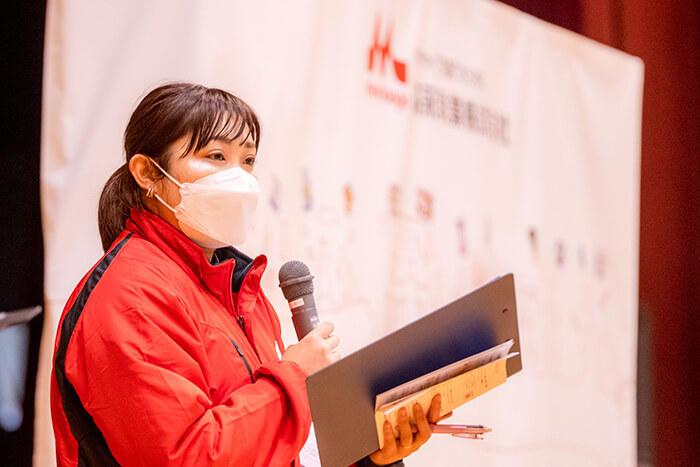 栄養講話では、ジュニアアスリートのカラダづくりについて森永乳業の堀さまと講師のお二人にお話をしていただきました。「練習」「食事」「睡眠」に加え、「腸内環境を整える」ことで体のコンディションを保ち、パフォーマンス向上に繋がることを伝えました。