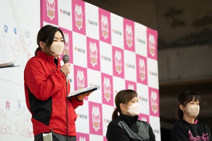 栄養講話では、ジュニアアスリートのカラダづくりについて森永乳業の寺内様と講師のお二人にお話をしていただきました。講師お二人とも、普段からバランスのとれた食事を意識してとっていたことから、怪我をしたことがなかったとお話されました。佐野さんからは、1回の食事で栄養をきちんととることは難しいが補食でチーズや乳製品を食べていたお話が聞けました。寺内様からは、脳と腸の関係のお話や日々の練習で体を鍛えるだけでなく、腸内環境を整えることで試合で良いパフォーマンスを発揮できるようになるお話などもしていただき、生徒達は真剣に聞いていました。