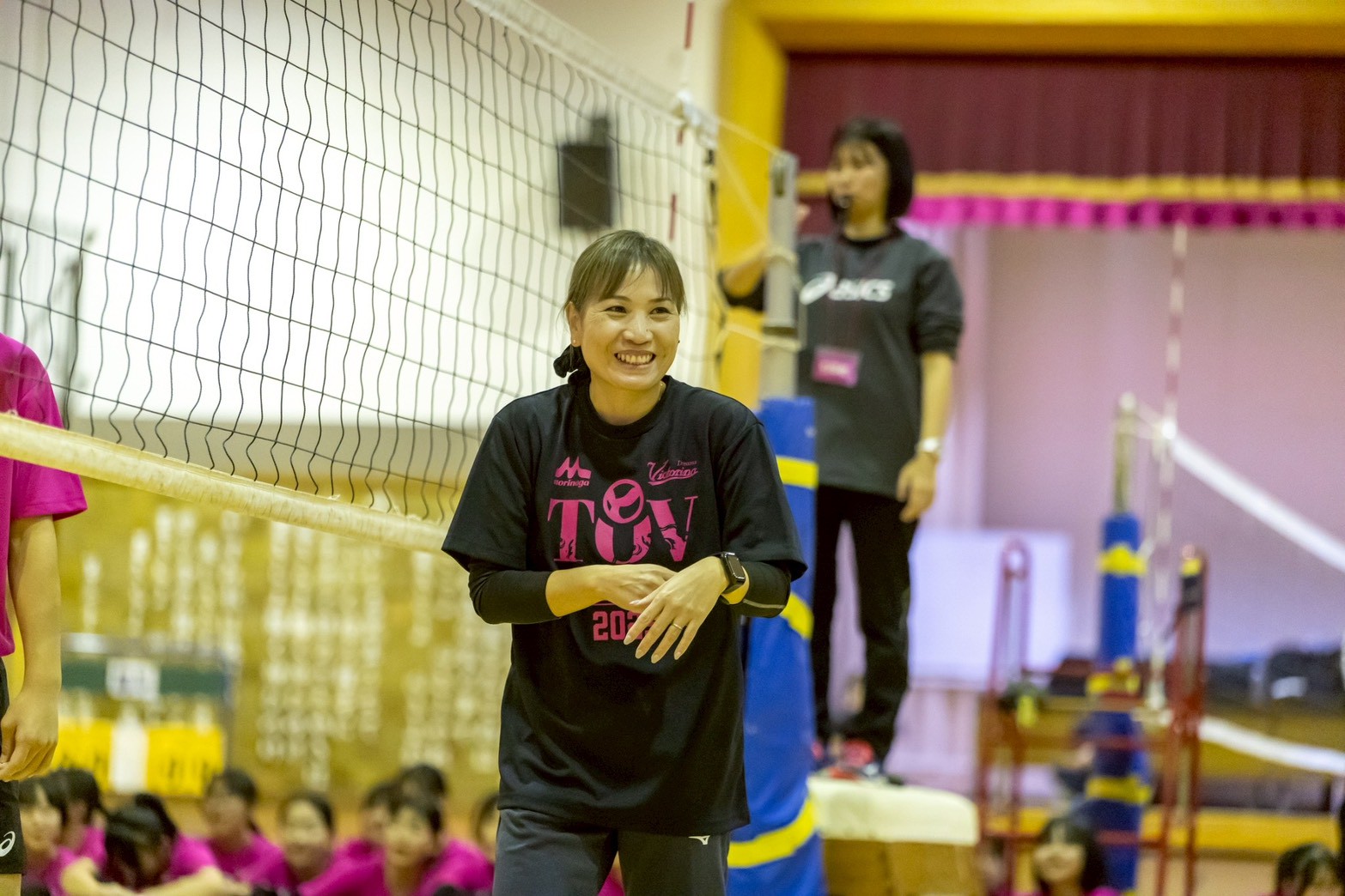 ミニゲーム後の講師チームとのスペシャルマッチでは、竹下さんの正確なトスから繰り出される井上さんのクイックなど、現役時代を彷彿とさせるプレーに会場は大いに沸きました。