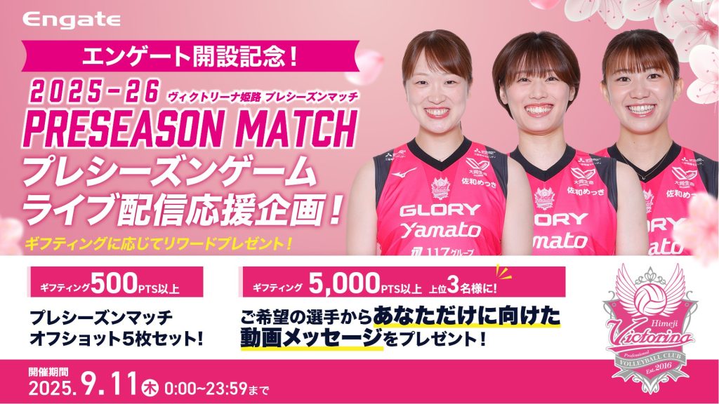 ぜひご来場いただき、2025-26シーズンの新たなヴィクトリーナ姫路の試合をどうぞお楽しみください!