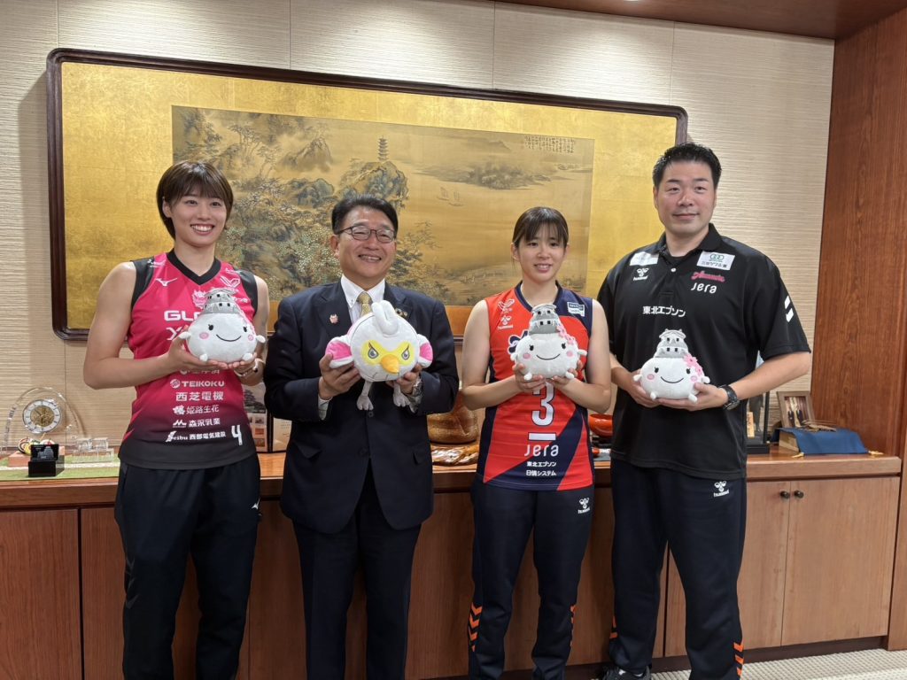 10月24日(金)、ヴィクトリーナ姫路(運営:株式会社姫路ヴィクトリーナ 代表取締役社長 上原光徳)はホームゲーム開幕に際し、姫路市長表敬訪問を行いました。