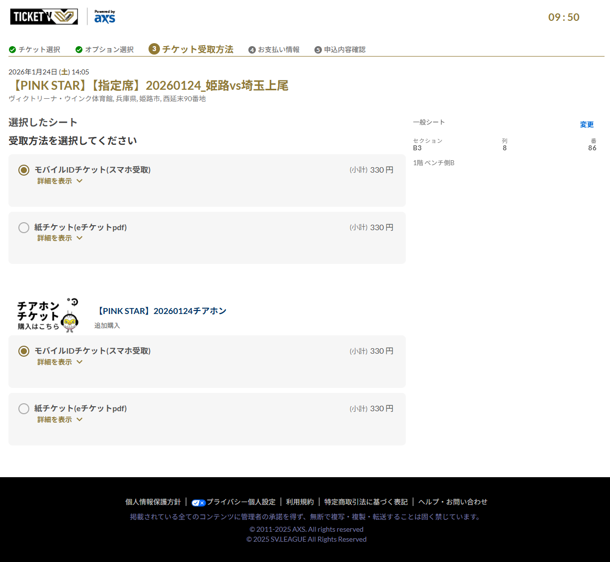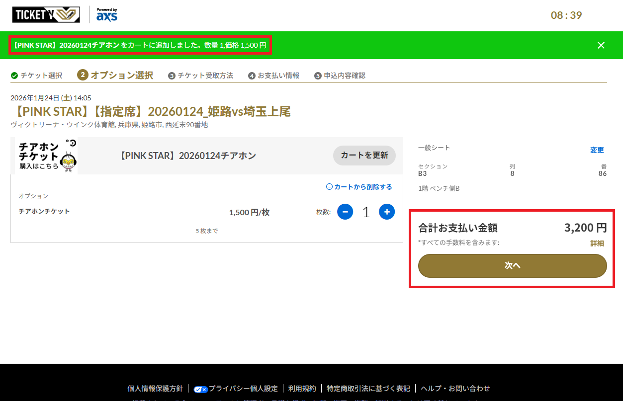 4.チケット内容に間違いがないか確認し、通常通り決済へとお進みください。