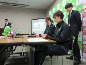 当日はマイナンバーカードを利用したe-Taxについての説明に続いて、実際にスマ―トフォンを使ってe-Taxを模擬体験しました。体験を終えて佐々木選手は、「マイナンバーカードを利用して確定申告をすると、とても簡単にできました。私もマイナンバーカードとスマホで確定申告したいと思います」。また、河俣選手は、「今年初めて確定申告をします。マイナンバーカードとスマホを使ってしたいと思います。」と感想を述べました。
