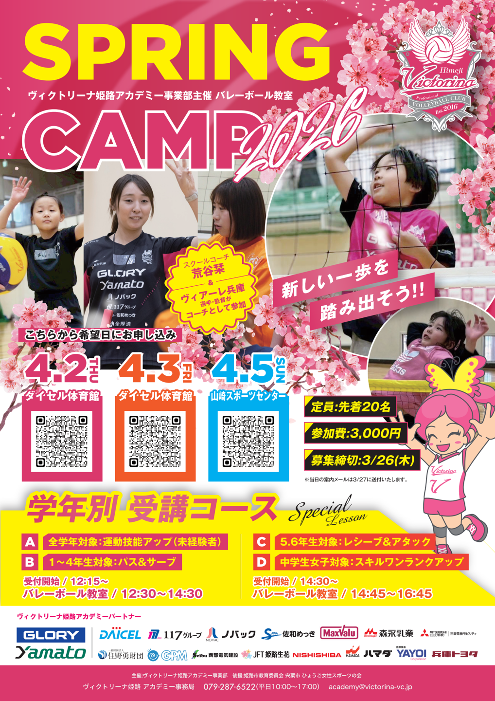 4月2日よりSPRING CAMP2026 ヴィクトリーナアカデミー バレーボール教室を開校いたします!