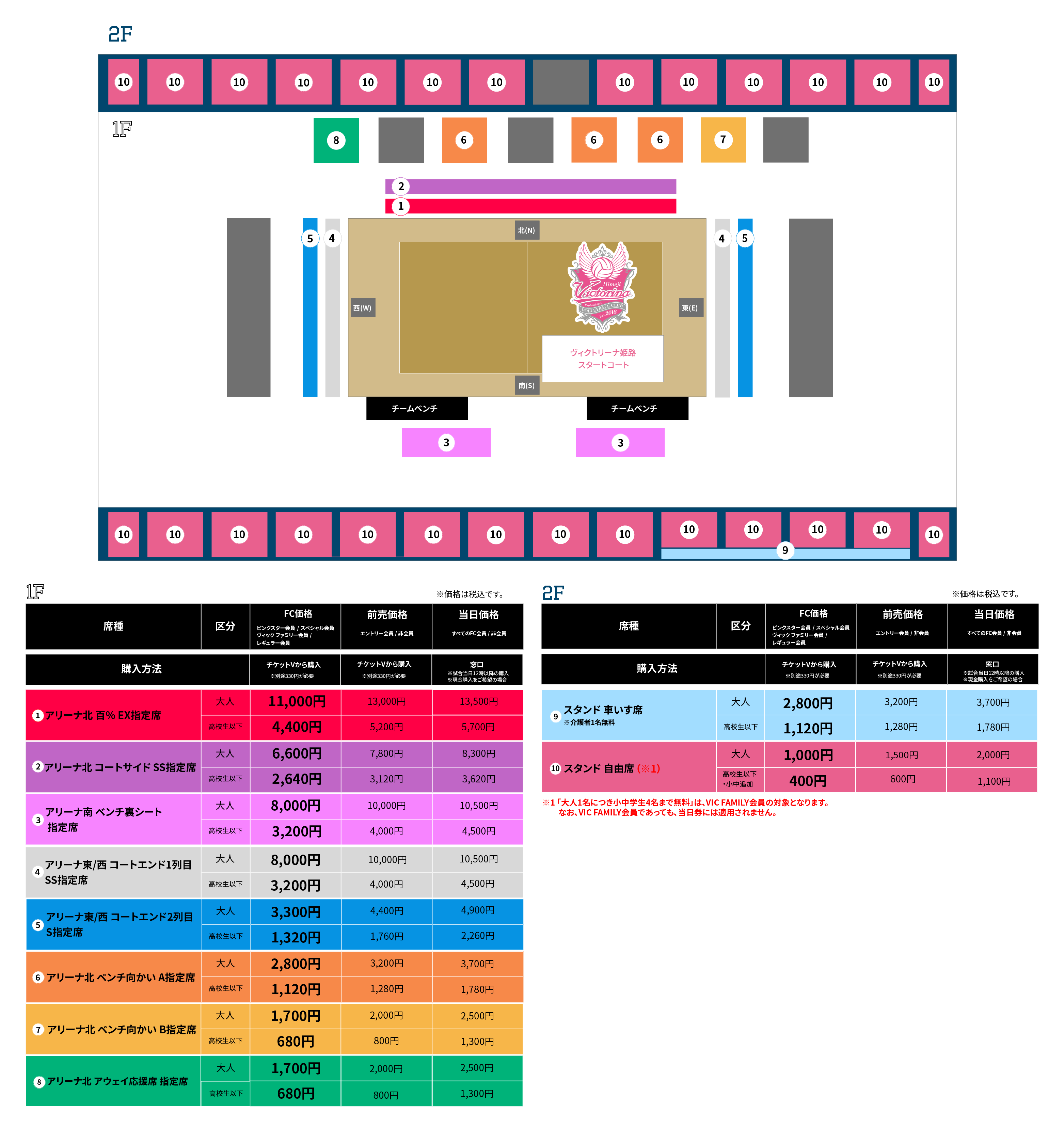 ホームゲーム会場 席図・価格表